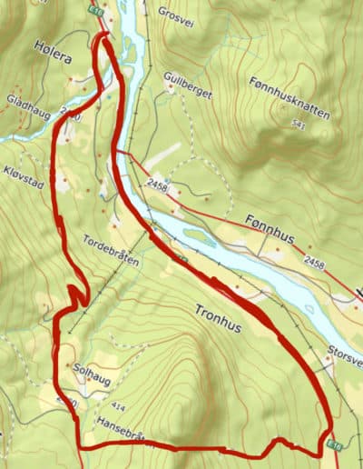 Gaupeskaret er markert på kartet og ligger rett sør for Tronhusknatten. En kjapp tur opp på Tronhusknatten kan også anbefales på samme tur. Her får du fin utsikt over Hølera.